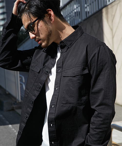 チェストヨークに揃えた大きめのフラップポケットがアクセントの長袖ミリタリーシャツ。ボタンカラーまで統一したアースカラーが落ち着きのある雰囲気です。メイントップスとしてはもちろん、羽織りユースや巻きアレンジにとマルチに活用できるのが◎。ワードローブに押さえておくと頼りになります。