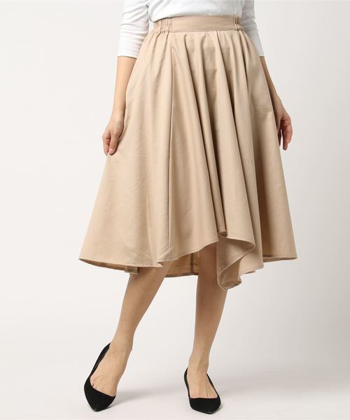アシンメトリーヘムのミモレ丈で、ふわりとラグジュアリーに揺らめく様に思わずうっとり。大人レディスタイルを叶えるスカートです。ONでもOFFでもシーン問わず活躍する、きちんと感と華やぎが調和したひと品です。