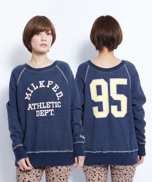裏起毛させたスウェットは柔らかく、保温性があります。ヴィンテージライクなスウェットトップはオーバーサイズがポイント!スキニーパンツやスカートの裾を出してルーズに着こなして! model:身長165cm 着用サイズ:SMALL