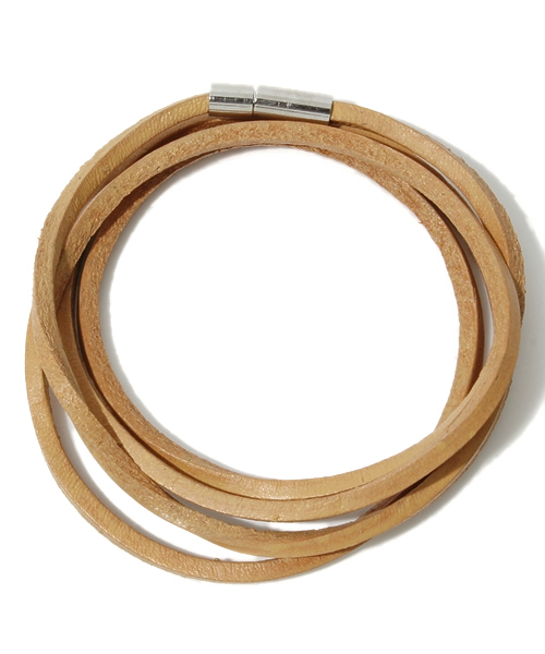 一つで手軽にボリューム感が出せるブレスレット。シンプルながら光沢感のある金具がアクセント。使い込むほどに味が出るので、変化していく風合いが楽しめます。お値段も手頃で、ご自身用は勿論、プレゼントにもオススメです。 店舗にてお問い合わせの際は、下記の品名・品番をお申し付け下さい。品名:レザーブレス 品番:MB1305-005C