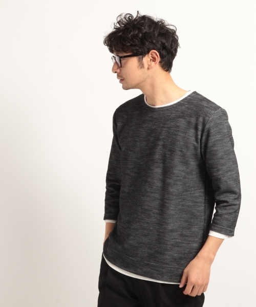 人気のレイヤードトップスに新作登場ニットのような表面感があるカットソーとインナーTシャツのセットで、ワンアイテムでレイヤードスタイルがきまるお得でお手軽なアイテム。カットソー素材なので、着心地よく、ケアもラクラク。インナーのTシャツは、裾から少しのぞく設定で、今っぽいレイヤード感が◎