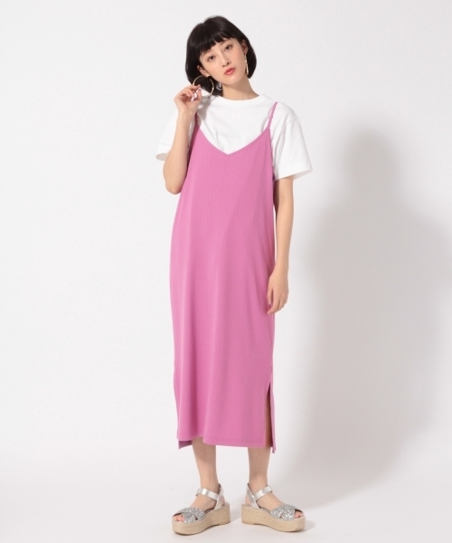毎年人気のキャミワンピース LOWRYS FARM定番のキャミワンピースが今年も入荷しました!! 凹凸のあるテレコ素材がシンプル過ぎずお洒落に見せてくれます。 縦のラインは細身効果もあるのでカジュアルはもちろん、大人めにも着ていただけます。 肩ヒモの部分でお好みの長さに調節ができ、伸縮性もあり動きやすいデザインに☆ ベルトと合わせてもウエストラインがはっきりし今年らしいコーディネートに♪ ・裏地有り。