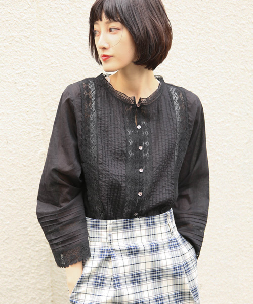 アンティークレースを使用したブラウス 高級感あふれる繊細なアンティークレースを使用したブラウス。 世界に数十台しかない織り機を使用し1万本の糸で丁寧に仕上げました。 表面感があり、ふんわり優しい印象の素材でこの季節に大変着やすいアイテム。 コンパクトな丈感なのでボリュームあるボトムとも相性抜群です!!