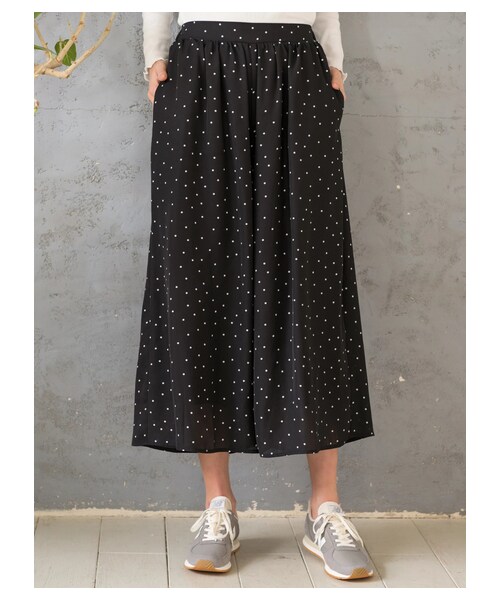 エアリーなジョーゼット素材でふんわりとした上品なフレアシルエットのスカーチョ。 ウエストはバックゴム仕様でストレスフリーな履き心地。