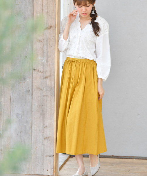 さらっとふわっとナチュラルなコットンリネンミックススカートさらっとしてふんわり柔らかいコットンとリネンをミックスしたナチュラルスカート。ゆったりとしたつくりなのでリラックスしてご着用いただける1枚です。着こなしやすい無地と爽やかなストライプの豊富なカラーバリエーションからお好きな1着をお選びいただけます。裏地なし伸縮性なし薄手ウエスト総ゴム(ひも入り)サイドポケットありインド生産(インド製品特有の色柄、風合いのため多少の色むら、織りキズ等は商品の特徴の一つですので、予めご了承ください)洗濯:洗濯機使用可(ネット使用)