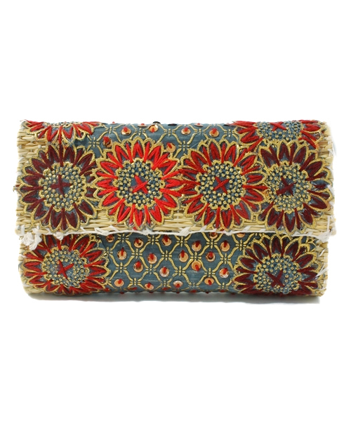 刺繍によってデザインされた大きな花がポイントになったクラッチバッグ。 夏のスタイリングにあわせやすいモロッコ製のアイテムです。 品番 10152-22-035