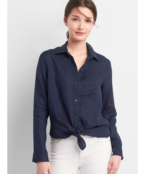 リラックス感のあるストレート シルエット 太ももにかかる丈 モデルの身長は175cm、胸囲は86cm、ウエストは58cm、ヒップは89cmで、GapレギュラーSサイズを着ています。滑らかなリネンの織り地 長袖、ボタン付きカフス スプレッドカラー、ボタンフロント 胸にパッチポケット,胸にパッチポケット カーブしたシャツテールの裾 *商品タグに記載の価格とサイト上の販売価格が異なる事があります。