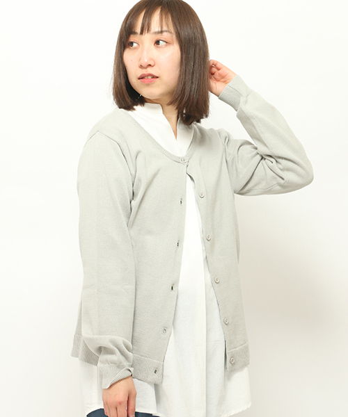 ボタンを開けると裏側の配色がチラっと覗くシンプルカーディガン。着やすさにこだわっていて、袖はボリュームを出さずすっきりストレートに。コットンニットなのでチクチクせず、3シーズン着用できます。シンプルネイビーに、ニュアンスグレー、春の花でもあるミモザをイメージしたイエローカラーの3色展開。[クリーニング]手洗い可ドライクリーニング可(F)ウェットクリーニング(W)