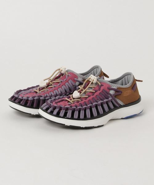 ALEXANDER LEE CHANGデザインモデル パープルレイン You say you want a leader. But you can't seem to make up your mind. I think you better close it. PRINCEのPURPLERAINという曲の歌詞から紫の雨が降り土と混ざり合ったグラデーションをイメージ。 誰かに何かを決めてもらうのではなく、自らが立ち上がり行動しようという意味を込めた奮起一転カラーにしました。 AlexanderLeeChang ★ Collaboration with Alexander Lee Chang ・特許取得済みのインターロッキングコード システムは、2本のコードが足の動きに合わせて変形し、優れたフィット感を提供 ・軽量素材O2フォームを使用することで、UNEEKより25%の軽量化に成功 ・足裏の形状に合わせて立体成型されたO2フォームフットベッドが快適なクッション性を発揮 ・クッション性に優れ、軽量なミッドソール ・耐摩耗性とグリップ性に優れたノンマーキングラバーアウトソール ・天然原料使用の抗菌防臭加工CLEANSPORT NXT™