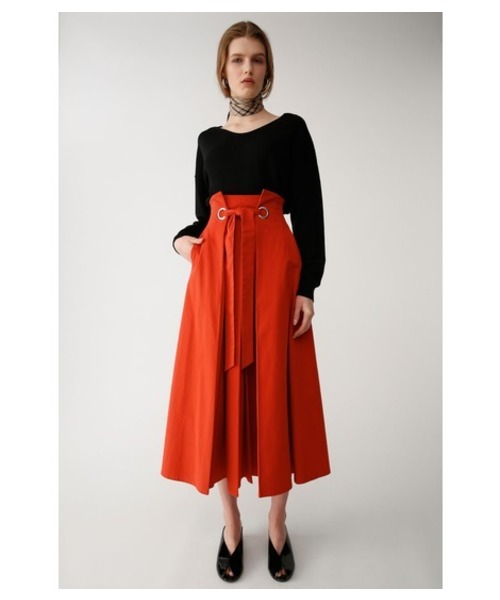 【WAIST DESIGN SKIRT】 程よいフレアシルエットと、ウエスト部分のデザインがポイント。滑らかな肌触りの良い素材を使用しているので、デイリーユースにピッタリです。 ・ファスナー有り。 ・裏地有り。