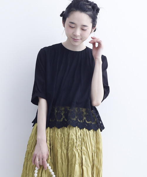 身頃にソフトな風合いの本体生地の上にレースを重ねた上品なブラウス。レース部分はフラワー刺繍があしらわれていてフェミニンな雰囲気を高めてくれます。 ボトムスを選ばない優秀ブラウスです。 【 merlot plus (メルロープリュス) とは 】 merlotのオケージョンライン。 普段着にPLUSしてドレスアップできる ユーモア&ハッピーな「きちんと着」を提案。 結婚式や二次会、パーティーなどのお呼ばれ、オフィスで大事なお取引先との商談時などちょっとフォーマルな服装が求められるシーンで使える[きちんと着]。 少しだけ周りと違った、ワンピースだけじゃない、ちょっぴり個性的で遊び心を忘れないお洒落を楽しめるmerlotが発信しているオケージョンラインです。 コンセプトにあるように、普段のカジュアルスタイルにも取り入れられるアイテムです。