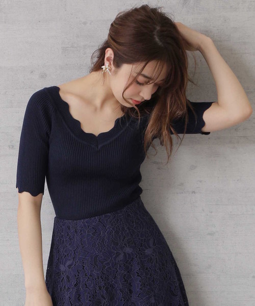 人気のスカラトリムニットがこのシーズンをとらえてアップデート。ほどよくボディに沿うリブ素材に、ネックライン、スリーブのスカラップが女性らしさを一層引き出してくれます。半袖よりも長めの五分袖に設定しているので、二の腕が気になる方もすっきり着用できそう。Vネックはデコルテを綺麗に見せてくれる形にこだわっているので、オフィスでも着られるシンプルデザインながら、ちょっとした色気も感じられるはず。