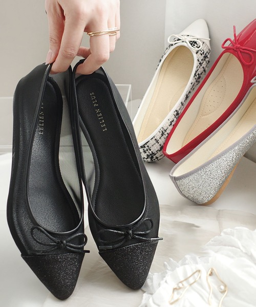 ◆◆「楽ちんなのに大人っぽくキレイめにはける」とんがりバレエシューズ◆◆2026春夏カラー再販!!普段のコーデに取り入れやすく、媚びないかわいらしさを演出してくれるシンプルバレエパンプス。とんがりシルエットが細身で女度をUP。シャープで美脚効果をもたらしてくれます。リボンがアクセントになって大人可愛さもプラス。柔らかすぎず適度なしなやかさ、屈曲性のあるソールと柔らかいアッパー素材を採用し歩いた時もストレスなく安心した履き心地です。足についてくる感覚が心地よく、思わず足取りも軽やかに。超軽量でぺたんこなので重さを感じさせません。足裏全体には柔らか低反発インソールを使用。肉厚クッションがフィットしふわふわで快適な履き心地の良い仕上がりで足を包み込んでくれます。フラットだから気軽に歩けて疲れにくい楽に動けるぺたんこソール。軽くてたくさん動けるので小さなお子さんのいるママにもおすすめです。スカートスタイルにはもちろんパンツとの相性も抜群。どんなスタイルにも合わせやすいバレエシューズ。通勤からデイリー、休日スタイルとマルチに活躍してくれる優秀アイテムです。その他のバレエパンプスシリーズはこちら■ラウンドトゥVer⇒FX2001で検索■ポインテッドトゥVer⇒FX2015で検索 ★現在のページはこちらです★■スクエアトゥVer⇒FX2030で検索■リボンレスVer⇒FX2035で検索【スタッフ着用コメント】●ゆき普段サイズ22.5~23.0cm<エジプト型>足幅:細め(B)、甲高:標準的足長:22.5、足囲:20.4、甲周り:20.8、足首周り:20.5素足着用36⇒足入れできますが、かなりきついです。【足幅】ちょうど【足長】きつい37⇒程よくゆとりもって履けます。【足幅】程よくゆとりあり【足長】程よくゆとりあり●いの普段サイズ23.0~23.5cm<ギリシャ型>足幅:標準的(D)、甲高:標準的足長:23.2、足囲:22.8、甲周り:20.5、足首周り:18.5素足着用36⇒全体的に圧迫感があります。【足幅】きつめぴったり【足長】若干きつめピッタリ37⇒ゆとりが出て楽に履けますが歩くと少しパカパカします。インソールで調整して履きたいです。【足幅】程よくゆとりあり【足長】ゆとりあり●ゆみこ普段サイズ23.5~24.0cm<エジプト型>足幅:細め(B)、甲高:低め足長:23.8、足囲:21.7、甲周り:22.0、足首周り:20.0素足着用37⇒足入出来ますが、全体的に小さめでした。【足幅】小さい【足長】小さい38⇒長さも幅も丁度良く履けます。【足幅】丁度良い【足長】丁度良い●イッチー普段サイズ24.0~24.5cm<ギリシャ型>足幅:やや広め(2E)、甲高:標準的足長:23.8、足囲:23.5、甲周り:23.2、足首周り:21.8素足着用39⇒適度にゆとりあり楽に履けます。【足幅】ちょうど【足長】程よいゆとり40⇒大きくてぶかぶかします。【足幅】ゆったり【足長】ゆったり※入荷時期によって中敷きのお色やロゴが異なっている場合がございますがどちらかお選びすることはできません。※商品は箱のない袋の状態でお届け致します。※商品の入荷時期によって色合い・生地等に若干の違いがございます。※素材によってサイズ感が異なる場合がございます。※グレー(スエード)について、インソールはブラックとベージュの2パターンありますが、選べません。----------------------------------------------------------------------------<価格改定のお知らせ>2026/01/19より、原材料高騰のため価格改定をさせて頂きます。ご了承下さいますよう、お願い申し上げます。----------------------------------------------------------------------------