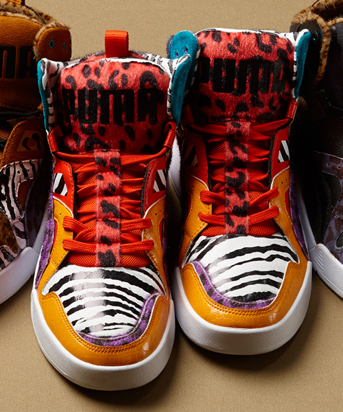 2013秋冬のプーマ最重要モデル「スリップストリーム」のアニマルシリーズより、Future Trinomic スリップストリームSKです。MENサイズ展開。プーマのアーカイブモデルであるスリップストリームをモチーフに、現代の解釈(Future Trinomic)とアニマルというシーズナルテーマを掛け合わせた斬新でプーマらしい一足。本モデルSK=SNAKE(スネーク)を意味し、さまざまな異なるファブリックを組み合わせてそのテーマ性を表現したユニークな一足。[2013 Fall] <SLIPSTREAM(スリップストリーム)> SLIPSTREAMが初めて米国で発表されたのは1987年。白ベースにチャコール グレイという配色の競技用バスケットボールシューズとしてリリースされました。日本では、翌1988年に展開開始。当時のストリートシーンではバスケットボールシューズスタイルが大流行しており、競技用のスリップストリームをファッション性の高い素材使いでマッシュアップしたSLIPSTREAM SNAKEとTHE BEASTがUSA企画で発売開始され、人気を博しました。