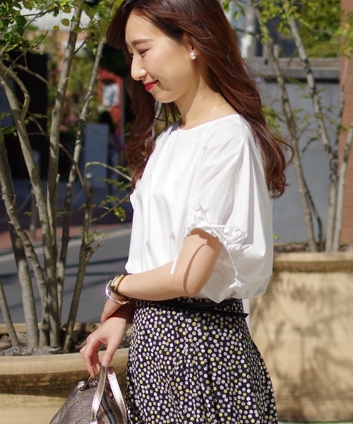 ドロスト仕様のスリーブデザインを採用した半袖プルオーバーブラウス。ドロストを絞って、ボリュームのあるシルエットをお楽しみいただけます。ハリのあるコットン素材を使用しており、きれいなシルエットをキープ。ほどよいカジュアル感と可愛らしさで、デイリーシーンに活躍します。ボディラインを拾わず、幅広い体型をカバーします。バックファスナーあり。 洗濯:洗濯機使用可(ネット使用)