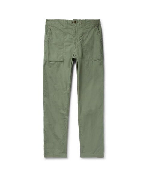 Engineered Garments designer Mr Daiki Suzuki is a longtime collector of vintage workwear and his passion is apparent in trousers like these. They're cut from durable cotton-ripstop and reminiscent of classic fatigues and military chinos. Shown here with Chimala shirt, Blue Blue Japan jacket, Converse sneakers. - - Olive cotton-ripstop - Belt loops, four pockets, internal drawstring - Button and zip fastenings - 100% cotton - Machine wash
