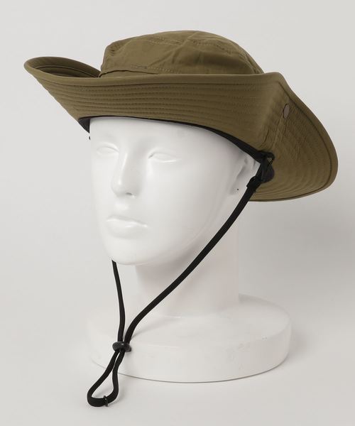通称:Fielder Hat 厳しい紫外線から頭部をガードできる、シンプルなトレッキングハット。サイドのスナップボタンを留めると、テンガロンハット風にできます。広めのつばで日差しを遮り、UPF50+・紫外線カット率95%以上のUVプロテクト機能を備えて、強い日差しのフィールドでの長時間活動に対応します。耐久はっ水加工を施すことで、突然の雨が心配な野外フェスやキャンプでも重宝。クラウンの下端にベンチレーションがあり、通気性を確保しています。サングラスを外したときに差し込んでおけるホールドスリット付き。