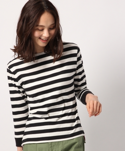 ベーシックボーダーTシャツ ボーダーのピッチは人気の太目を使用しました! 袖口のリブ暑い時まくりやすくなっています。 襟裏、裾のスリットの裏が配色になっているのもこだわりポイント。 定番ボーダーはアウターインのアクセントにもなるので毎シーズンのマストアイテムです♪