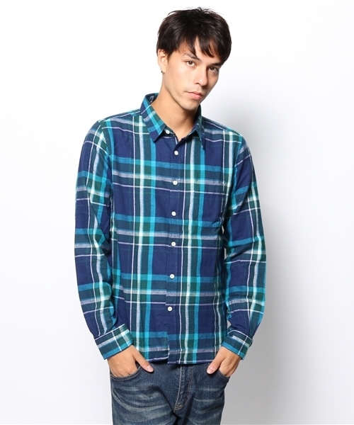 【FINE BOYS1月号掲載商品】【FINE BOYS12月号掲載商品】【Samurai ELO12月号掲載商品】 毎シーズンご好評頂いている、毛足の短い起毛素材を使用したネルシャツ。雰囲気のある仕上がりで着まわしやすく、ぬくもりのある着こなしを演出します。袖口にボタンが2つ付いているので太さを調節出来るのも特徴。10色展開とカラフルかつ今年らしい配色で、好みに合わせて幅広くご用意しました。一枚で着て頂くのは勿論、インナーとしてのアクセント使いもオススメです。 店舗にてお問い合わせの際は、下記の品名・品番をお申し付け下さい。品名:ネルチェックシャツ 品番:B13WN-1104-006 ▼メンズシャツ一覧はこちら▼▼▽PCの方はコチラ ▽スマホの方はコチラ ▼お得な最新情報をいち早くお届け!メルマガ登録はこちら▼▼ ▽PCの方はコチラ ▽スマホの方はコチラ▽モバイルの方はコチラ model:H174 着用サイズ:MEDIUM ブラック・グリーン・ブルー系その他・イエロー系その他・レッド系その他 model:H182 B91 W73 H90 着用サイズ:LARGE 詳細画像 model:H180 B83 W68 H88 着用サイズ:LARGE