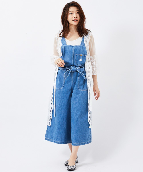 【フレアーデニムサロペット】 生地は軽く柔らかい風合いも残しつつ、程よい張り感もあるのが特徴。 小さなブランドタグとボタンが付いた胸ポケットがアクセントのフレアーサロペットです。 女性らしさの出るフレアーシルエットが大人のカジュアルコーディネイトにこなれ感をプラスしてくれるおススメな1枚。 共地の付属ベルトは、リボン結びでウエストをマークしてフェミニンなスタイルに。。。 また、リボンを取り外してラフに着こなしが楽しめるのも嬉しいポイントです。 ・洗濯機使用可 ・ファスナー有り 【Lee】 ヘンリー・デビッド・リーが1899年にH.D.Lee.マーカンスタイル・カンパニーを設立。 Lee社は食料品を扱う卸商社で、後に雑貨品や衣料も扱うようになる。ジーンズ業界に革命を起こしてきた「Lee」は、現在もカウボーイをはじめとするワークウエアを原点としながら、機能性と質実剛健をベースに現代的なデニムを提案しています。