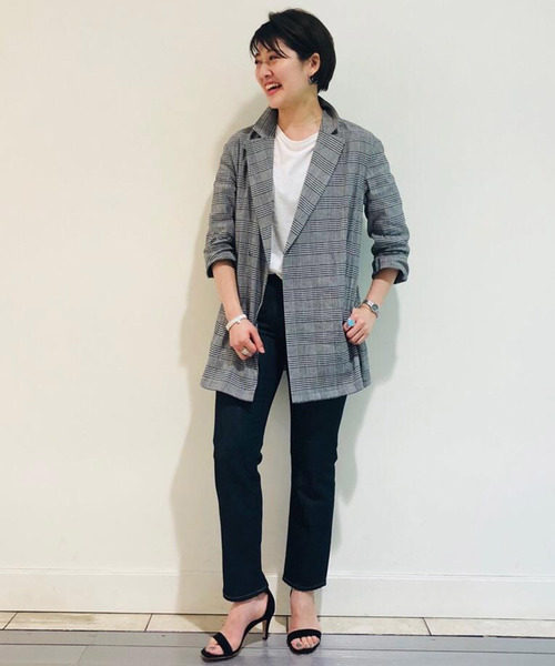 さらりと羽織るだけでコーデが決まるロングジャケット。 ラフに着ていただきたいので、あえて肩を落とすゆったりシルエットになっています。 シンプルなTシャツに前を開けて羽織るだけのスタイリングもおすすめ! 袖はロールアップして着ると、腕を長く見せながら上半身がコンパクトにまとまり、バランスが取りやすくなります♪