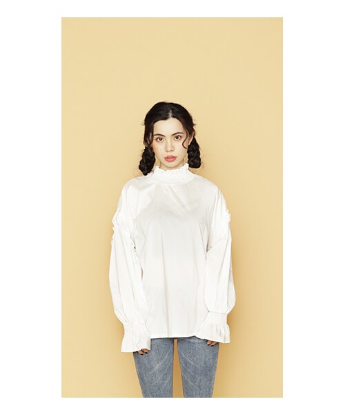 スリーブ部分にフリルが施された、フリルネックのブラウスです。 はっきりしたカラーが春らしい、女性らしさを演出出来るアイテムです。 上にフリルショルダーのニットワンピを合わせたり、 ハイウエストのボトムスと合わせてもかわいい♪ カラーはピンクとホワイトの2色をご用意しました◎