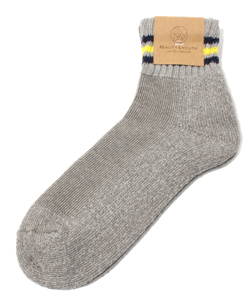 プレップ感のあるライン入りのクォーターソックス。通年でご使用いただけ大変お勧めです。BEAUTY&YOUTHらしいカラーリングを落としこみ、今期のスタイリングにもぴったりなアイテムに仕上がりました。コーディネートのアクセントにぜひお楽しみください! 店舗にてお問い合わせの際は、全国のBEAUTY&YOUTH 各店舗まで下記の品番をお申し付け下さい。品名:BY 3LINE QT 品番:1435-699-1297