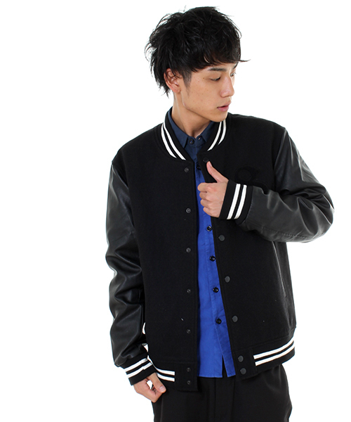 【CHOKiCHOKi 12月号掲載商品】【smart12月号掲載商品】 リブラインが特徴的なメルトンスタジャン。袖にはフェイクレザーを採用し、身頃はウール混紡で仕上げることによりカジュアルになり過ぎず、男っぽい無骨さとスタイリッシュな着こなしを演出します。高い防寒性で秋冬本シーズンでもメインアウターとしてお使い頂けるひと品。着こなしにクールな雰囲気をプラスするブラックやグレーに加えて、着こなしの主役になるブルーもご用意しました。シンプルなスタジャンは年をまたいで長くご愛用頂けます。デニムやネルシャツは勿論、スラックスやニットと合わせたシックな着こなしも今季オススメです。 店舗にてお問い合わせの際は、下記の品名・品番をお申し付け下さい。品名:メルトンスタジャン 品番:B13WN-1004-011 ブルー model:H177 着用サイズ:MEDIUM ダークグレー model:H176 着用サイズ:MEDIUM ブラックmodel:H173 着用サイズ MEDIUM 詳細画像model:H178 B86 W74 H88 着用サイズ:LARGE