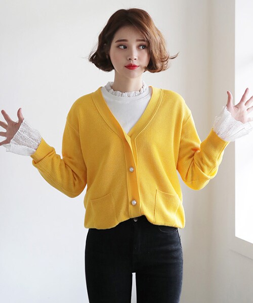 ブレンドニットで伸縮性のある心地よいタッチ感の一着です! パールモチーフの前ボタンで女性らしく活用度も倍アップ↑ ※WEARに記載してある金額と、DHOLIC通販サイトに記載してある金額にシステム都合上、稀に誤差が生じます。正しい金額はDHOLIC通販サイトに記載された金額です。