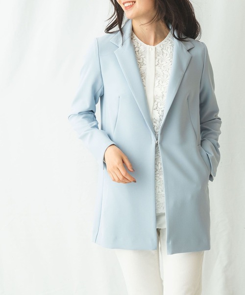 こなれた雰囲気で着こなせる、テーラードタイプのロングジャケットです。ソフトな風合いながら適度なハリ感も持ち合わせ、着心地の良さとシルエットの美しさを両立させています。内側は背裏付きで、スリット入りの袖口はラフにターンバックすることも可能です。コート代わりに軽やかに羽織れる、春にぴったりの1着。テーパードパンツ(30-81-09-923)とスーツでもお召しいただけます。背裏あり。ポケット2個。洗濯:ドライクリーニング