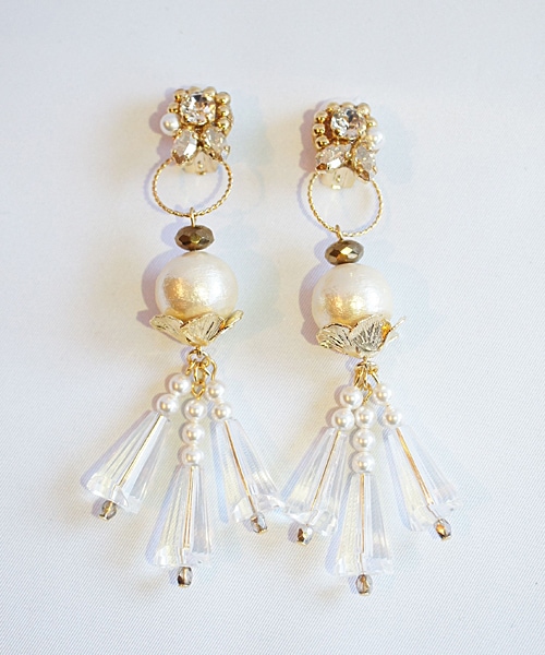 WEB限定の商品になります。 新しくゴールドも販売イスタートです。 2Way使用のヴィンテージ感あるデザインになります。 コットンパールを使用しているので軽く、縦に長いデザインは小顔効果もあります。 別ページの2Wayヴィンテージをお持ちの方は、こちらとも組み替えもでき、コーディネートによってお好きな組み合わせを楽しめます。 同じ色味でまとめていますので、大人っぽくシャープな印象になります。 ニットやブラウスに相性良くオールシーズンお使い頂けます。