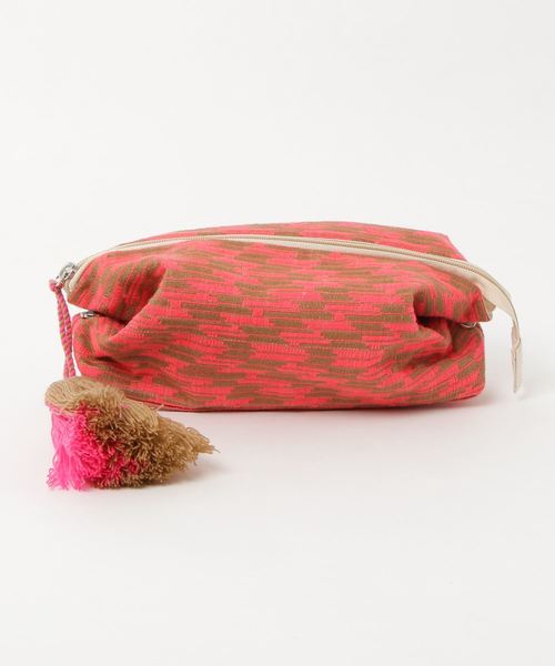 幾何学柄がキャッチーなポーチ。 ZIPトップのフリンジチャームがモダンなアクセントに。内ポケットも付いているので、細かいものの整理にも便利です。 飽きのこないデザインは、プレゼントにもおすすめです。
