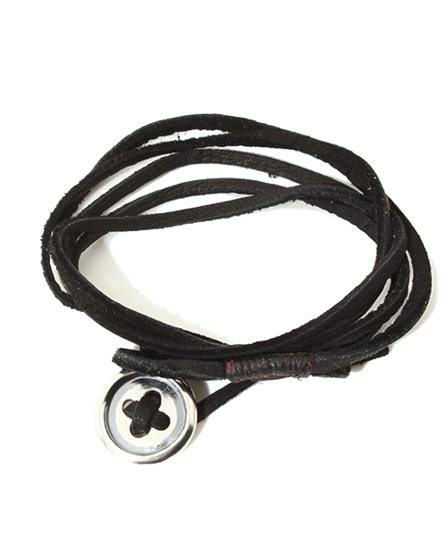 ◆Logrom◆(ログロム)『使い込むほどに味わいを増すレザーアクセ』デザイナー自身元々船乗りで世界中をまわり自分の五感で確かなものを感じ、それをアクセサリーというフィルターに通して表現し展開。独学でアクセサリー作りに向き合い作り上げられたその商品一つ一つはデザイナー自身の思いの詰まった作品になっております。また日本はもとより海外でも高く評価され注目されています。使い込むほどに味わいを増すカウレザーと、ボタンモチーフの留め具部分がオシャレなブレスレット。シンプルですが存在感のあるアイテムです。
