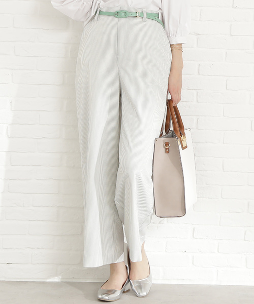爽やかな見た目が夏らしいコードレーン素材を使用したワイドパンツ。ストレートなワイドシルエットにクロップド丈なので、重たくなりにくい女性らしいデザインです。ブラウスや薄手のニット、Tシャツまで着まわしができ、通勤から休日まで系統かえたコーディネートが出来ます。※裏地付き・ジップフライ。