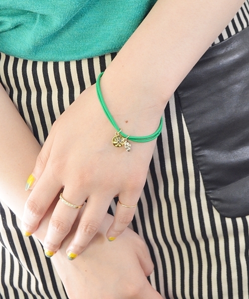 SHIPS JET BLUEのオリジナルアクセサリー小振りなチャームがアクセントのブレスレットはゴム素材で伸縮自在の為ブレスレットはもちろんアンクレットとしてもお使いいただけます。また、チャームもカラーによってスカル、クロス、スターのモチーフを使用。細身のスッキリとしたデザインで重ね付けしていただくのもオススメです。男女問わず気兼ねなくお使い頂けるアイテムです。SHIPS各店へは下記品番にてお問い合わせ下さい。 129-33-0046 ※画像の商品はサンプルです。 実際の商品と仕様、加工、サイズが若干異なる場合がございます。