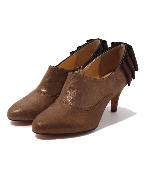 引き続き人気のバックディテールアイテム。大人シックなリボンモチーフはセンター部分に華奢なカシメをあしらい上品なアクセントに。甘さ控えめの華やかブーティは、旬なペンシルスカートをあわせると足元に程よいボリューム感を与えてくれます。お問い合わせの際は、全国のOdette e Odile店舗まで下記の品番をお申し付けください。品番:45232370683