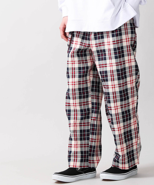 チェック柄で仕上げたワイドパンツ。ウエスト周りから裾にかけて、ストンと落ちるシルエットでスタイルがよく見えるラインにこだわりました。 股上をやや深くとり、スラックスの穿きやすさはそのままにシルエットで遊び心をプラスしたデザイン。また、共布のウエストベルトが手軽に着こなしのアクセントになります。 人気のワイドトップスやスニーカーと合わせるような着こなしも今季オススメです。 ・ジップフライ。