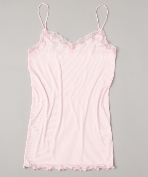 シンプルインナーこそ、素材とさりげないディティールにこだわった物を。ナイロンの上品な光沢となめらかな肌触りが特徴のテレコリブ素材。ポリウレタンが入っているのでストレッチ性に優れており、肌に吸い付くような柔らかさです。繊細なレースを胸元に施しているので、薄手のお洋服にも響きにくく、見えてもおしゃれです。●調節可能なスパゲティストラップ●同素材のブラレットやショーツとのコーディネートがおすすめ 《インフォメーション》◆商品のお気に入り登録完売していても再入荷時に再入荷通知を受け取ることができます!是非ご登録ください♪◆ブランドのお気に入り登録新商品や再入荷などの情報を受け取ることができます!ぜひご登録ください♪
