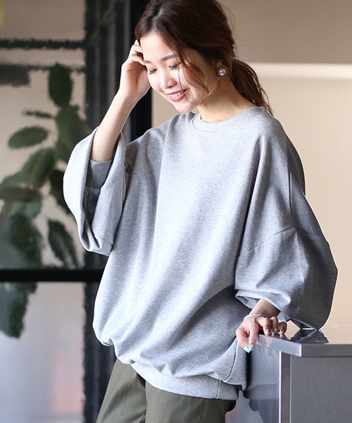 ◆Bab Bou Jeloud(バブ・ブージュルード)◆ ルーズなシルエットが可愛いレディライクなスウェット♪ カットソーより少し厚みのあるスウェット生地は少しハリ感もありルーズなシルエットの身頃や、可愛いそでのボリュームを綺麗に演出してくれます。薄くもなく厚くもない生地感はオールシーズン着ていただける生地ですが、今の季節にはぴったりの生地感です!スキニーパンツやレギンスと合わせて、上下で強弱をつけるスタイリングが今年のおすすめコーデ。