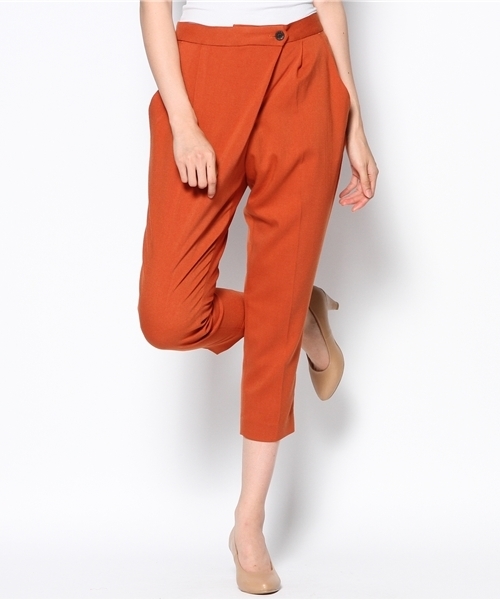 女性らしいキレイなレッグラインが叶うと大好評のタックテーパードパンツ♪ フロントボタンの位置を少しずらし、アシンメトリーなタックデザインに仕上げました。 ヒップはゆとりをもたせつつも、スッキリと見えるようシルエットにこだわりぬいた1本!! ストレッチ性のある素材を使用しているので履きやすく、デイリーに通勤にと大活躍してくれます♪ 今年人気の“ゆる華奢”シルエットで女性らしさもUP! 店舗へのお問い合わせの際は、下記品番をお伝え下さい。 品番: XALJM04110model:H170 B77 W66 H88 着用サイズ:MEDIUM