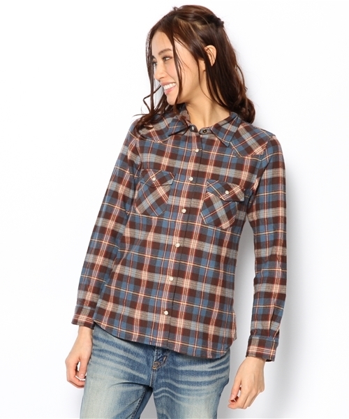 コットン素材の先染めチェックを使用したカジュアルシャツ。うっすら起毛をかけたウォーム感のある素材を使用。ウエスタンシャツをデザインソースに細身で着やすいデザインに仕上げました。 タイトスカートに合わせてカジュアルコーデをお楽しみください。 Model : H165 B80 W59 H85 (cm) Size : ONE SIZE 店舗へお問い合わせの際は下記品番をお伝えください。 品番:63-11-0068-747