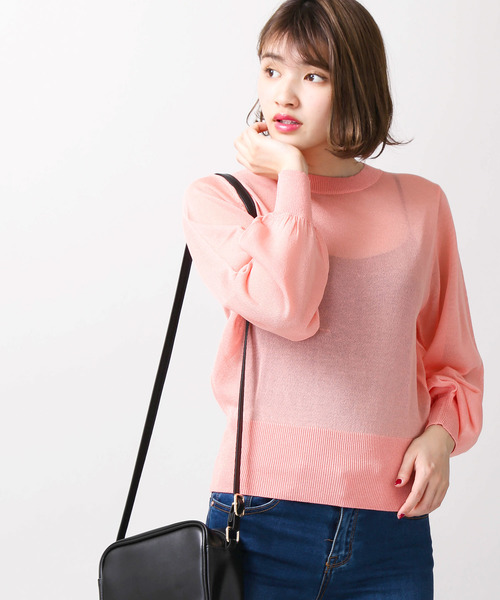 単色仕様で仕上げたシアーニット。透け感のあるシースルーデザインが、手軽に着こなしのアクセントになります。 程よくゆとりを持たせたシルエットがコーディネートにリラックスした雰囲気をプラスします。デニムやワイドパンツを合わせてカジュアルに、またスカンツなどと合わせてフェミニンにと幅広いコーディネートを楽しめるひと品。 今季はベレー帽やチョーカーなど、小物で遊びを効かせたコーディネートもオススメです。