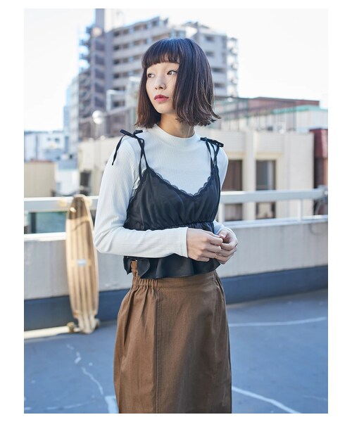 すっきりとしたリブプルオーバーに愛らしいキャミソールがセットで登場。 ストラップの華奢なリボンや裾のふんわりフリルがとってもCute!落ち着きのあるトーンカラーで上品な印象に◎ セットで着るのはもちろん、それぞれ単品使いで手持ちのアイテムとのレイヤードも楽しめます。