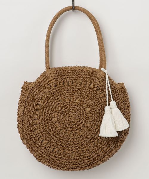 サークル型が可愛い、ナチュラルな素材感が特徴のペーパーバッグ。シーズンムードを高めるデザインでこれからの季節にぴったりです。裏地付きでしっかりしたつくり、さらに便利な内ポケットも完備と機能面も充実。デニムやシャツなどカジュアルアイテムと相性が良く、普段使いしやすいアイテ