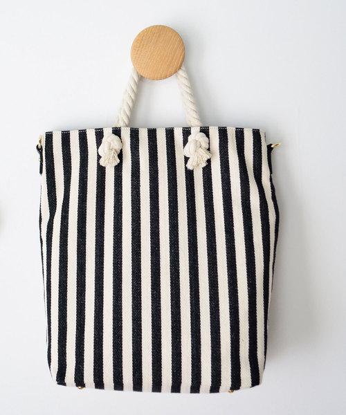 【デザイン】 トレンドのストライプ生地を使用した帆布生地の縦長トートバッグ ロープハンドルがアクセントになった、季節感を感じさせないデザインバッグです。 丈夫だけど柔らかいキャンバスを使用しているので、荷物の多い方にもオススメ。 A4サイズも収納可能なので、普段使いから春夏の通勤バッグとしても活躍します。 【仕様】 マチもあり、収納力は抜群。 ポケットも充実しており、バッグの中には小分けができるファスナー付きポケットが1つ、すぐに取り出しができるオープンポケットが3つあります。 さらに、ドリンクホルダーも2つ付いているので、とっても便利! メイン収納はマグネット仕様になっています。 【注意事項】 合成皮革特有のにおいがする場合がございます。 においが気になる場合は一度陰干しされてからご使用ください。 内側ポケット:4 外側ポケット:0