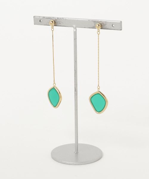 ゴールドチェーンが上品で、色鮮やかなモチーフが大人の遊び心をくすぐるピアス。さりげなく耳元にボリューム感をプラスし、顔周りをスッキリと魅せてくれます。コーディネートやシーンを選ばないシンプルなデザインも魅力。プレゼントにもおすすめのアイテムです。