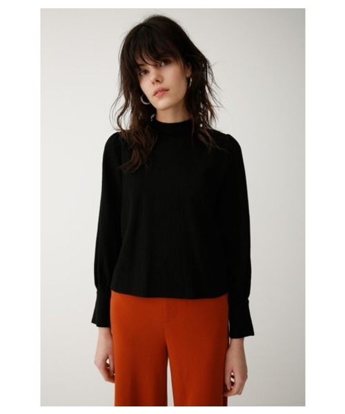 【PUFF SLEEVE BLOUSE】 女性らしい印象のパフスリーブデザインのブラウスは、ボタンアップのバックスタイルデザインでMOUSSYらしくカジュアルさをプラス。ハイウエストジーンズにインして着るのが気分です。ミドルネックのデザインもポイントになっており、カーディガンやジャケットのインナーとして着ても存在感あり。