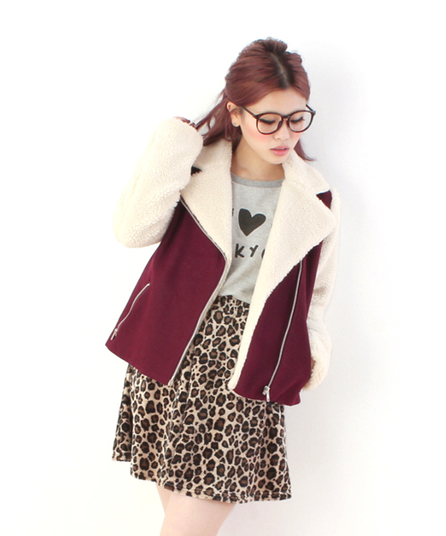 【JILLE12月号掲載商品】 【CHOKi CHOKi GiRLS12月号掲載商品】 メルトンとボアの組み合わせのライダースジャケットです。無骨になりがちなライダースジャケットも、もこもこボア×メルトンで非常に女性らしい印象に仕上がりました!ピンバッチ付きです。 店舗にてお問い合わせの際は、下記の品名・品番をお申し付け下さい。 品名:ボアライダース 品番:WC13AW-0011 原産国:中国 ※画像の商品はサンプルです。 ※モニターの設定状況によって実際の商品と若干色が異なる場合がございます。あらかじめご了承ください。 ※この製品は色が何色も用いられたものです。色移り・色泣きの原因となりますので下記の点にご注意ください。 ●雨などに打たれた場合、濡れた状態でバック等に押し込んだままにしたり、重ね置きなどしないでください。手早く乾いた布でできるだけ水分をふきとり、すみやかに陰干ししてください。 ●この素材は摩擦(特に湿った状態での摩擦)や、汗や雨等でぬれた時は他の衣料や下着に色が移ることがありますので、ご注意ください。 ネイビー スタッフ:H157 着用サイズ:FREE ワイン スタッフ:H159 着用サイズ:FREE
