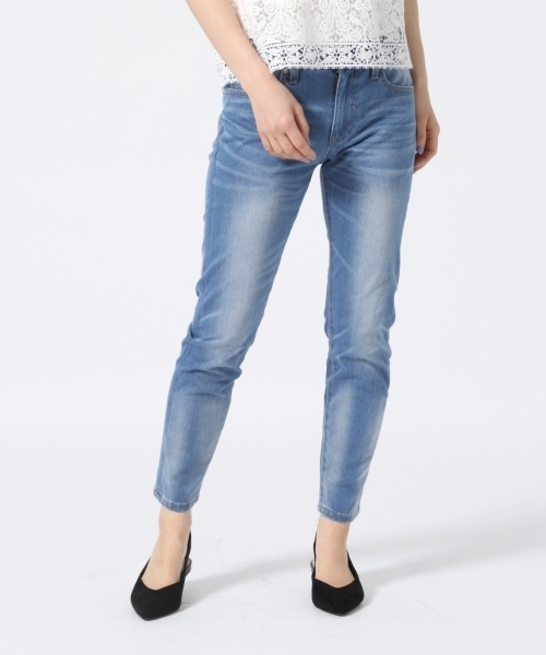 スーパーストレッチ素材のスリムパンツ ブラック、デニム2色の3色展開のスリムパンツ。 ■驚異的な伸縮率と伸張回復率 ・糸の開発や加工、製織などの工夫により、高いストレッチ性を付与した素材。 ・通常素材の約3倍の伸長率。(通常素材:約20~30%、上記素材:79%) ・通常素材の約1.5倍の伸張回復率。(通常素材:約70~80%、上記素材:92%) ■柔軟性があり、安定した着圧感 ・抜群のフィット感はもちろん、屈伸時に着圧感がなく快適です。 ■膝抜けなく優れた形態安定性 ・素材のハリ・コシがあるため型崩れしにくく、しっかりとした布帛アイテムの様な見た目も維持します。 ・屈伸運動を5,000回(一万歩相当)繰り返し行い、膝抜けの試験による検証を実施済。 ・ジップフライ。