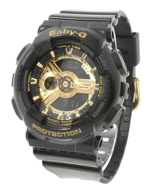 アクティブな女性のためのカジュアルウオッチBaby-Gから、G-SHOCKのビッグケースシリーズの人気モデル、GA-110のデザインにインスパイアされたNewモデルが登場。 GA-110は文字板やインデックスなど様々なパーツを複雑に組み合わせたビッグケースモデル。歯車をイメージしたパーツや立体的な文字板が、より複雑かつメカニカルな印象を与えています。今回G-SHOCKが持つクールな存在感を残しつつも、女性の腕にもフィットするよう小型化、薄型化を実現。立体的に配したインデックスにはキラキラと輝くメタル塗装を施し、時計の質感を向上。シャープでエネルギッシュな印象に仕上げました。押しやすさにこだわったサイドボタンが実用性を向上しています。機械的で複雑な文字板が手元にキラリと個性を与え、ストリートファッションシーンに映えるNew Baby-Gの登場です。 耐衝撃構造(ショックレジスト) 10気圧防水 ワールドタイム:世界48都市(29タイムゾーン、サマータイム設定機能付き) ストップウオッチ(1/100秒、24時間計、スプリット付き) タイマー(セット単位:1分、最大セット:24時間、1秒単位で計測) 時刻アラーム5本(1本のみスヌーズ機能付き)・時報 12/24時間制表示切替 LEDライト(残照機能付き) 重量 44.9g 店舗へお問い合わせの際は下記品番をお伝えください。 品番:33-22-0337-259